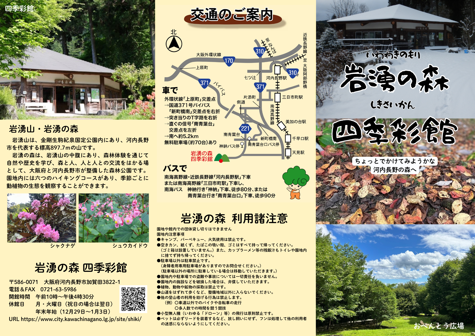 岩湧の森 四季彩館のパンフレットを次のとおり新しくしました。